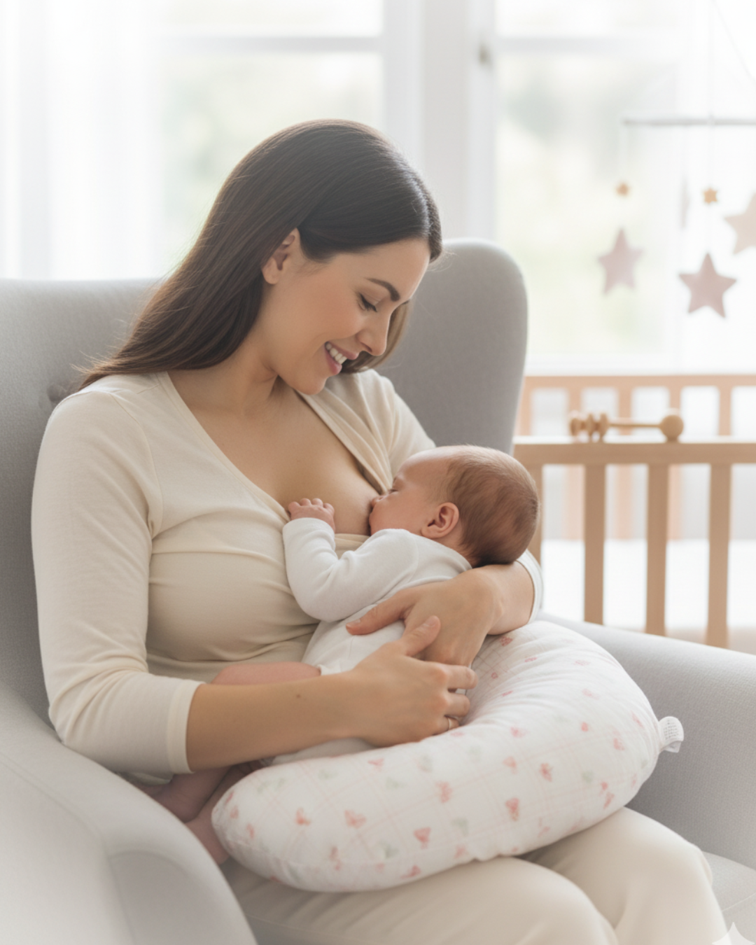 Durante a amamentação: auxilia a mãe a encontrar a posição correta e mais confortável.