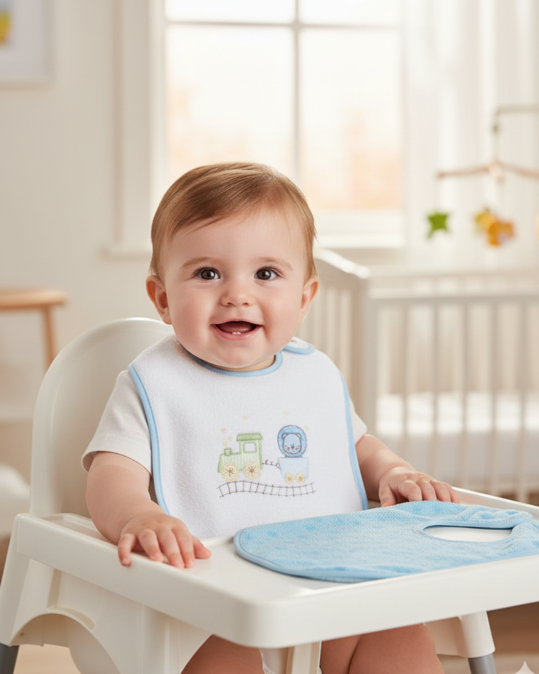 Além de proteger as roupinhas delicadas, o babador facilita o dia a dia, reduzindo a necessidade de trocas constantes.