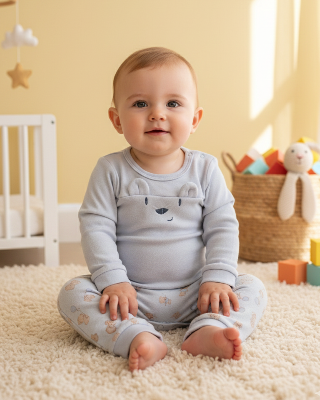 Conjunto bebê masculino longo confeccionado em plush macio e quentinho, ideal para os dias mais frescos. O body possui detalhes bordados, aplicação de orelhinhas e abertura prática entrepernas e nas costas com botões de pressão, facilitando o vestir. A calça é estampada, com cós elástico que garante conforto e liberdade de movimento para o bebê.