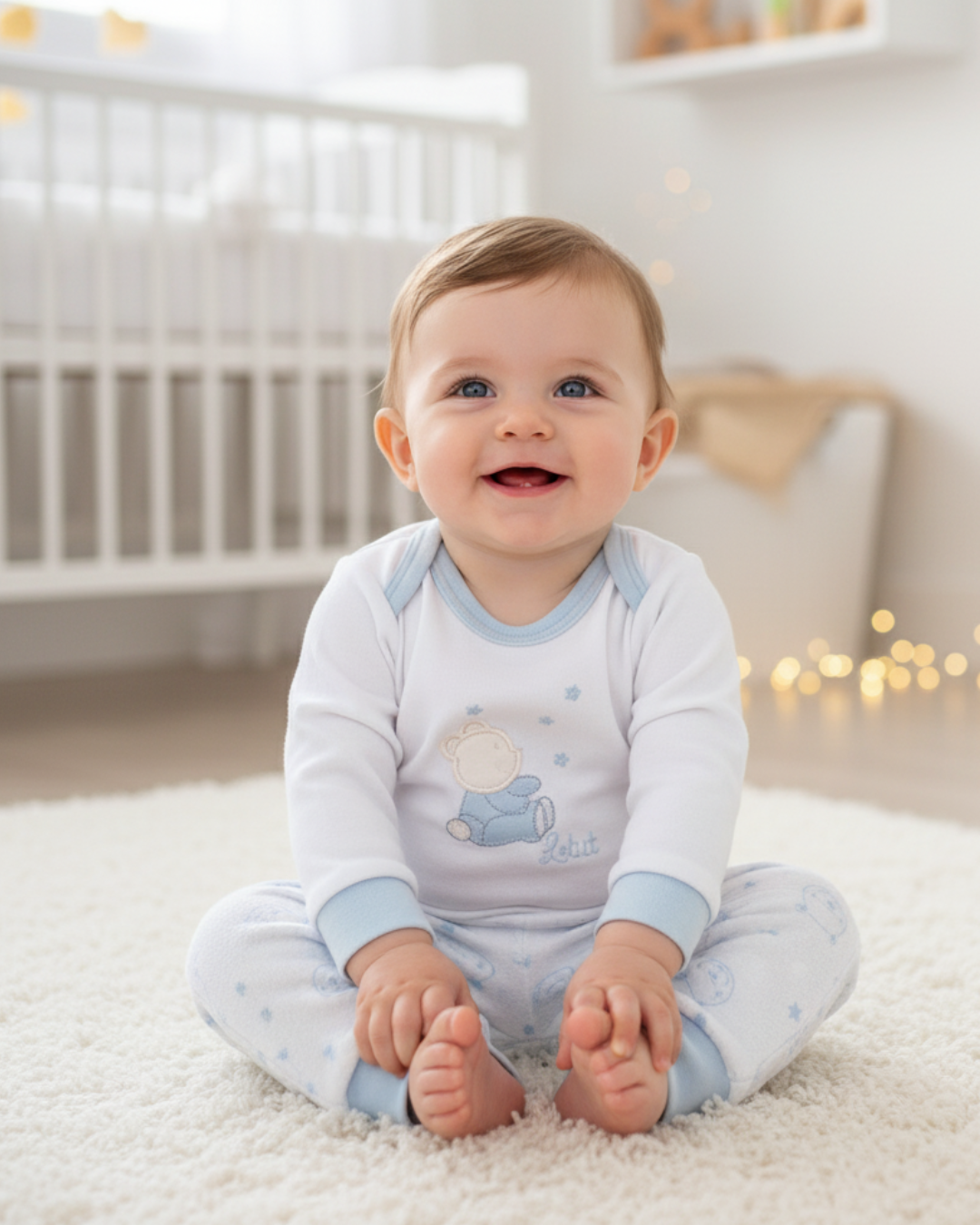 Conjunto bebê masculino longo confeccionado em plush macio e confortável. O body possui gola polo com detalhes bordados, abertura frontal com botões e abertura entrepernas com botões de pressão para facilitar a troca. A calça é feita em pelo estampado, com cós elástico que se ajusta suavemente ao corpo do bebê. Ideal para os dias mais fresquinhos, une conforto e estilo.