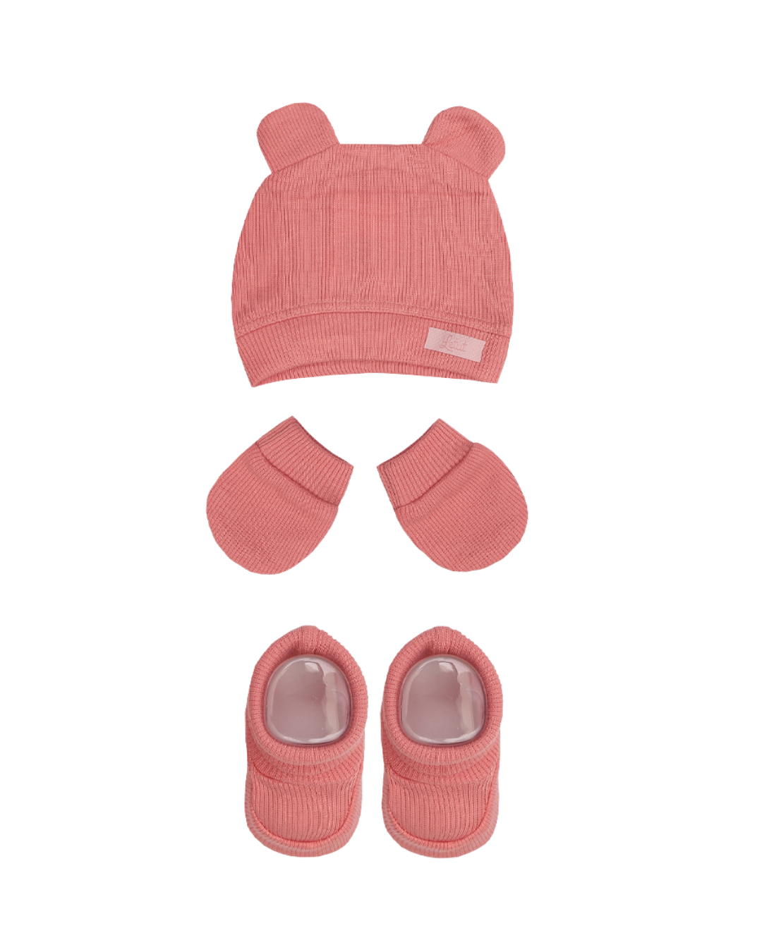 Kit 3 peças de touca. luva e sapatinho "Linha amamentação" rm ribana canelada com bastante elasticidade, super confortável e macio.