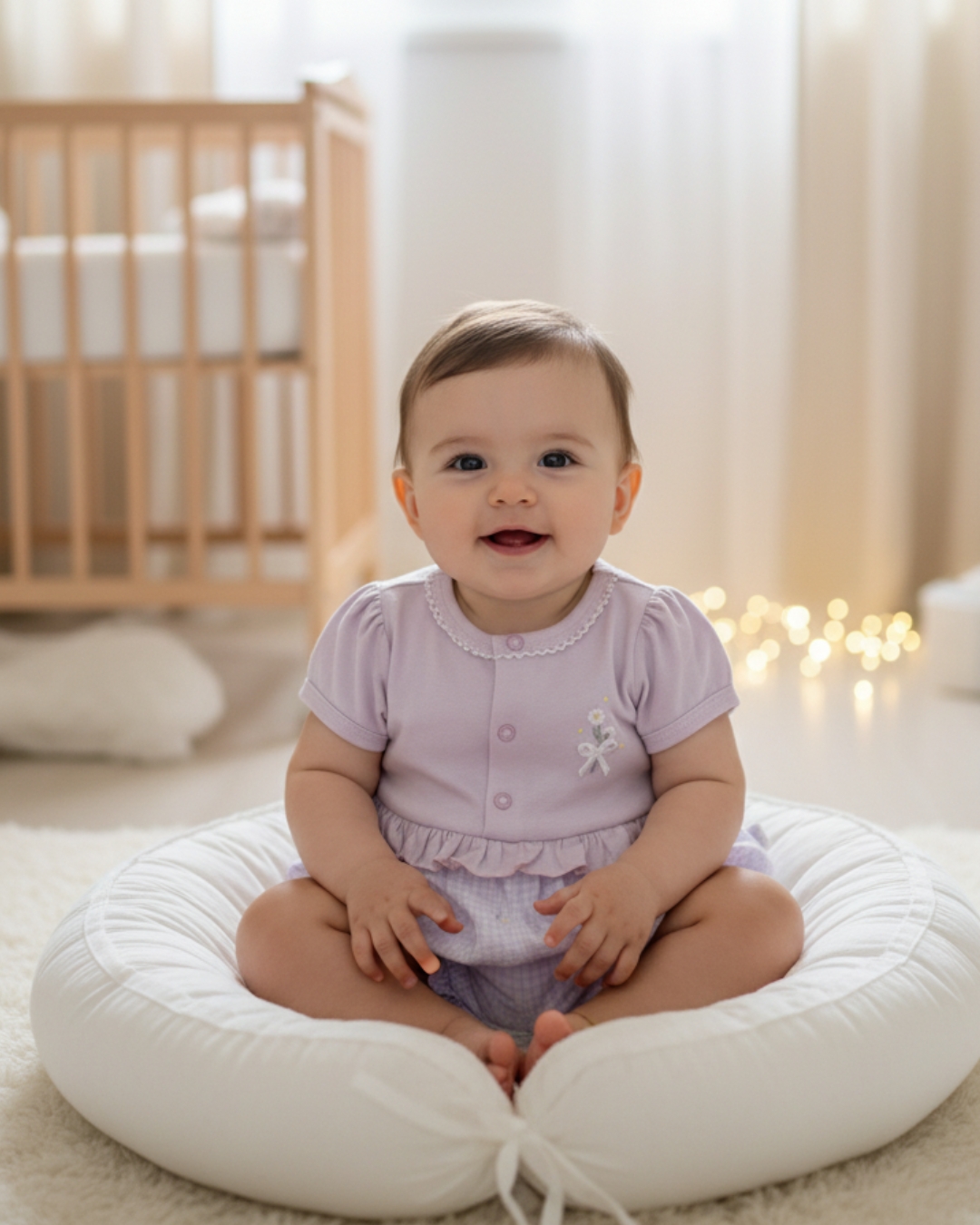 Macacão bebê feminino curto, confeccionado em meia malha lisa (parte superior, 100% algodão) e malha polifiada estampada (parte inferior, 96% poliéster, 4% elastano). Leve e macio, possui detalhes bordados, lacinho e abertura em botão de pressão, oferecendo conforto e praticidade para o dia a dia da sua pequena.
