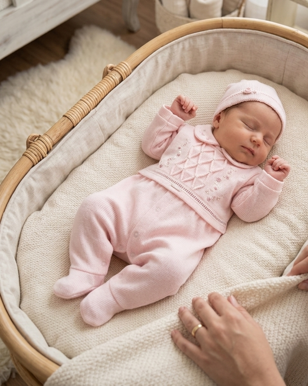 Material: Confeccionado em malha trabalhada quadriculada, que oferece uma textura macia e confortável para a pele do bebê.