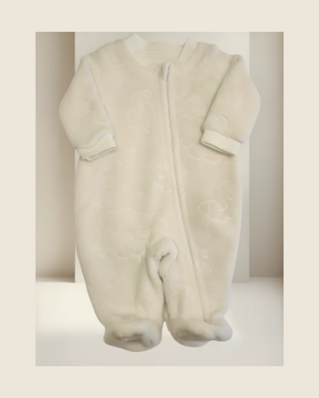 Macacão bebê unissex longo em pelo macio, conforto máximo conforto e aquecimento. Possui abertura frontal com zíper para facilitar a troca e design com pé, mantendo o bebê sempre quentinho.