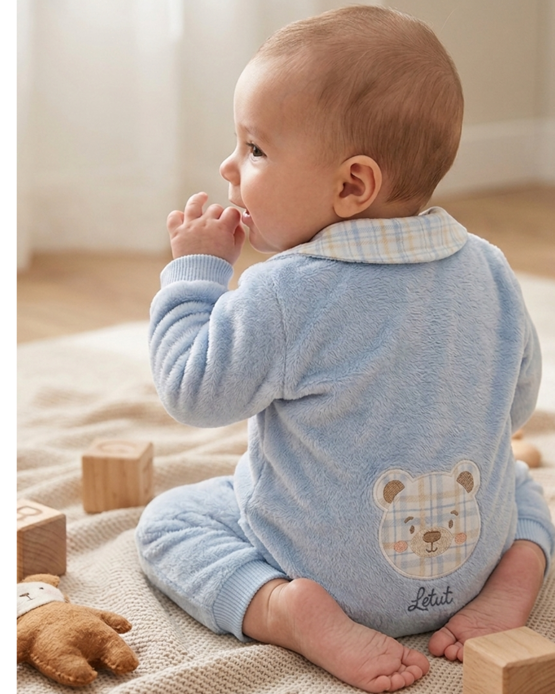 Conforto Premium: Confeccionado em pelo macio de alta qualidade, este macacão é super confortável e perfeito para manter o bebê aquecido com muito estilo.