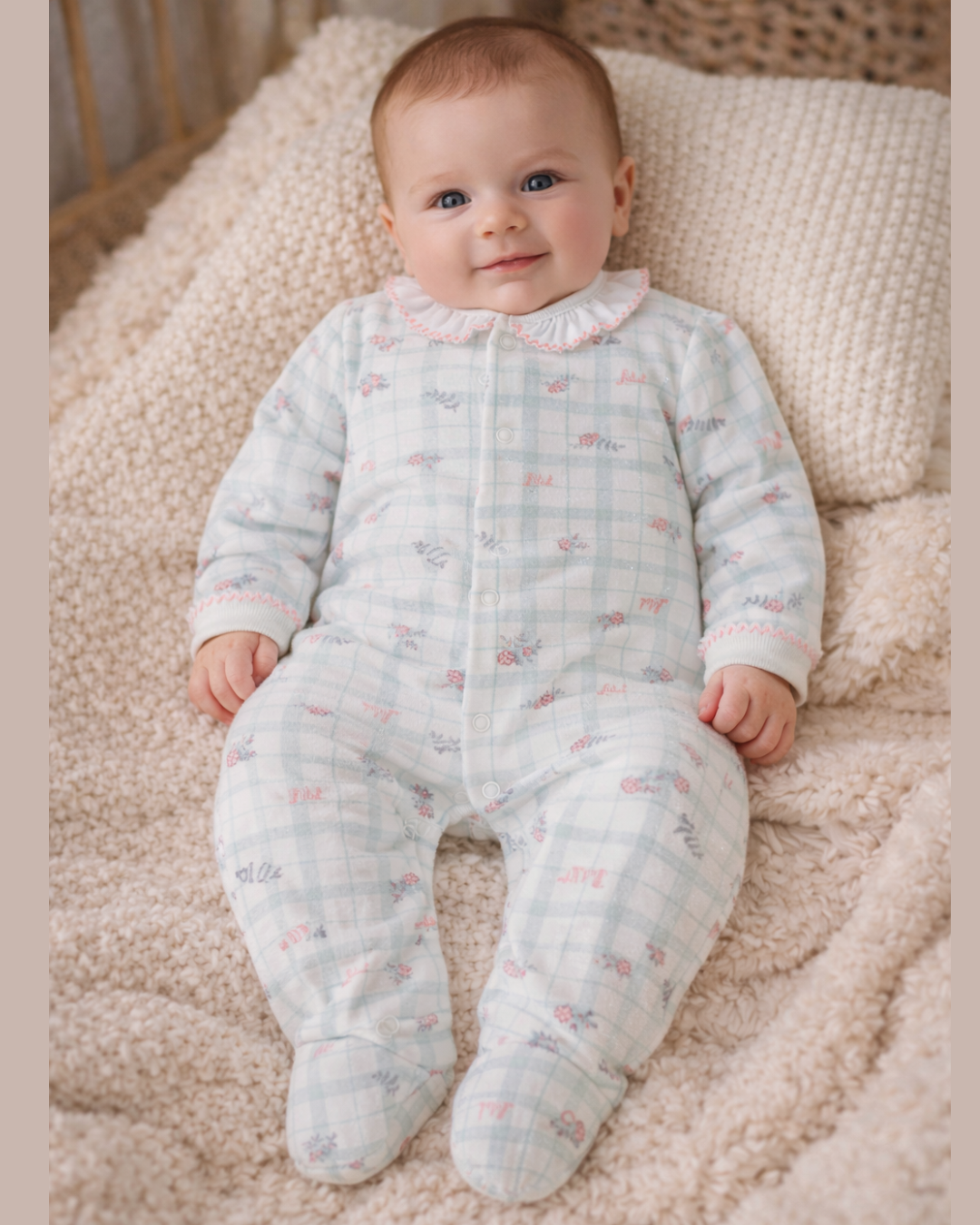 Conforto e Delicadeza: Desenvolvido em plush exclusivo de toque macio, este macacão envolve o bebê com segurança e acolhimento em qualquer ocasião.