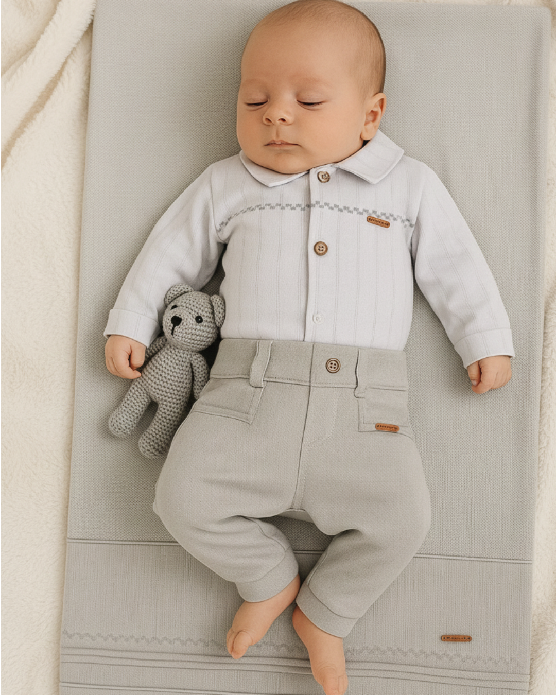 Com estilo casual sofisticado e etiquetas personalizadas da marca, é perfeito para compor momentos especiais, como saída da maternidade, visitas ou até mesmo ocasiões como batizado.