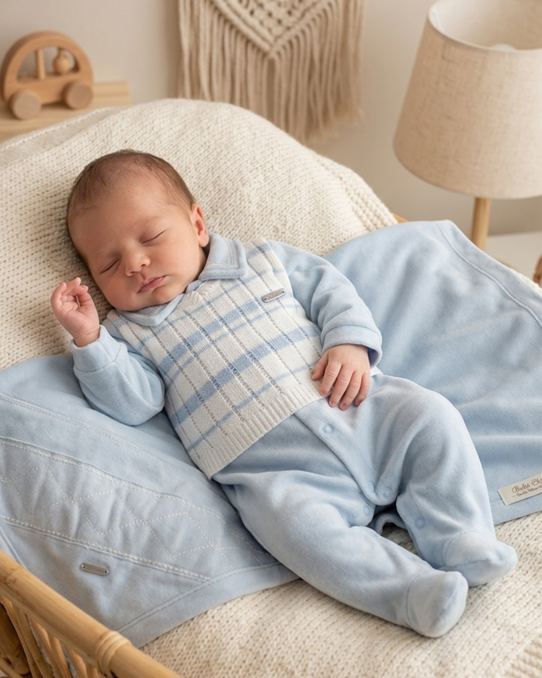 Manta: Acompanha manta também em plush, ideal para proteger o recém-nascido com suavidade e conforto nos primeiros dias.