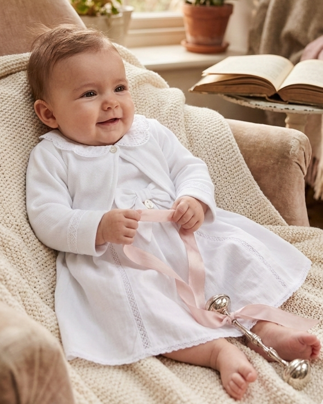 Conjunto: Composto por duas peças elegantes — um vestido e um bolero — pensado especialmente para batizados e momentos memoráveis.