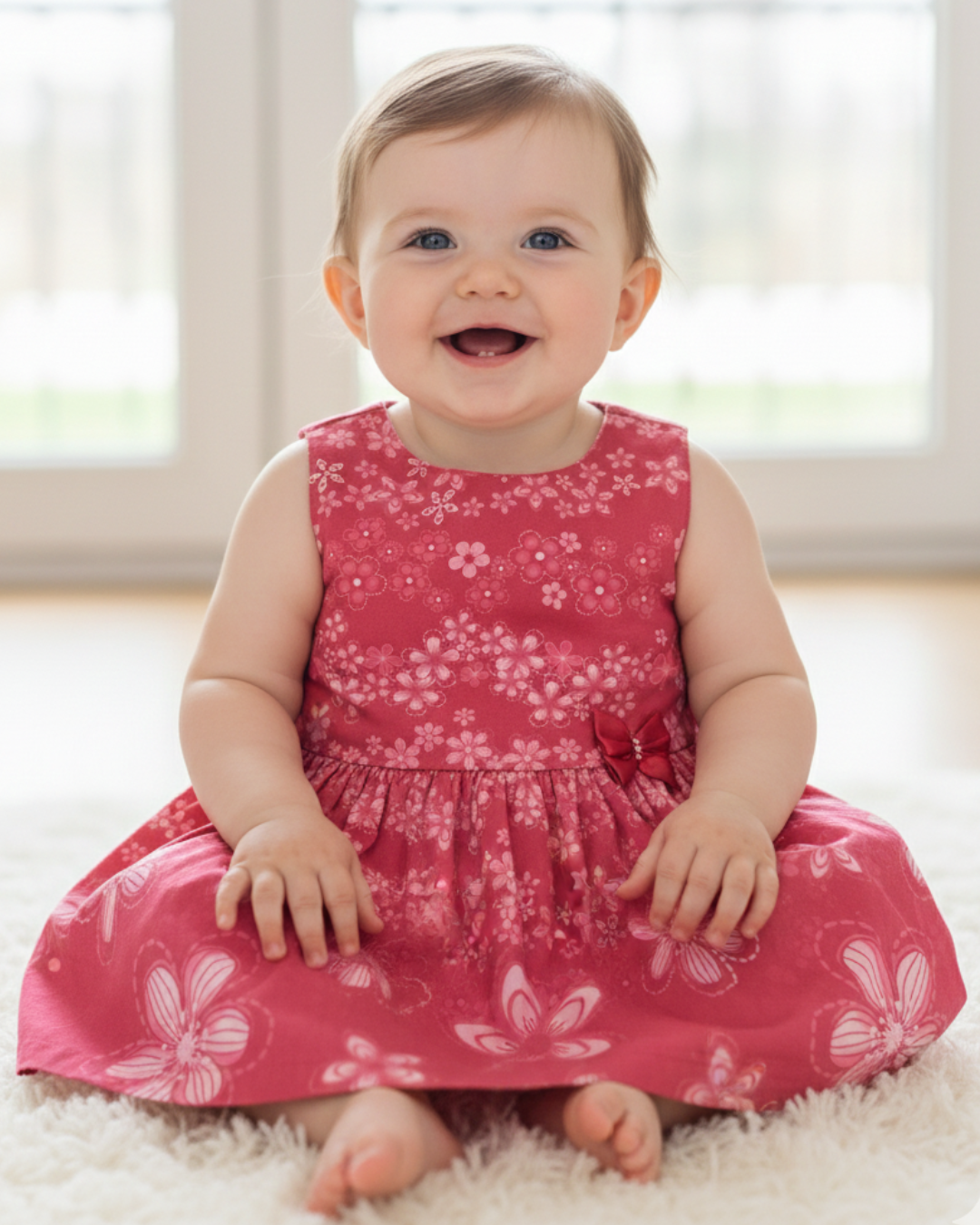 Vestido bebê feminino confeccionado em tecido estampado super leve e confortável, perfeito para todas as ocasiões. Possui detalhe de laço delicado que valoriza o visual e abertura com botão de pressão nas costas, garantindo praticidade na hora de vestir. Uma peça charmosa e funcional para o dia a dia ou momentos especiais.